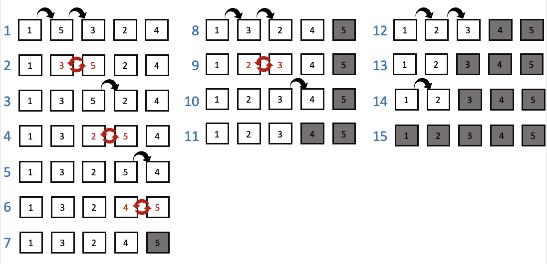 예를 들어 1, 5, 3, 2, 4 라는 배열이 있을 때