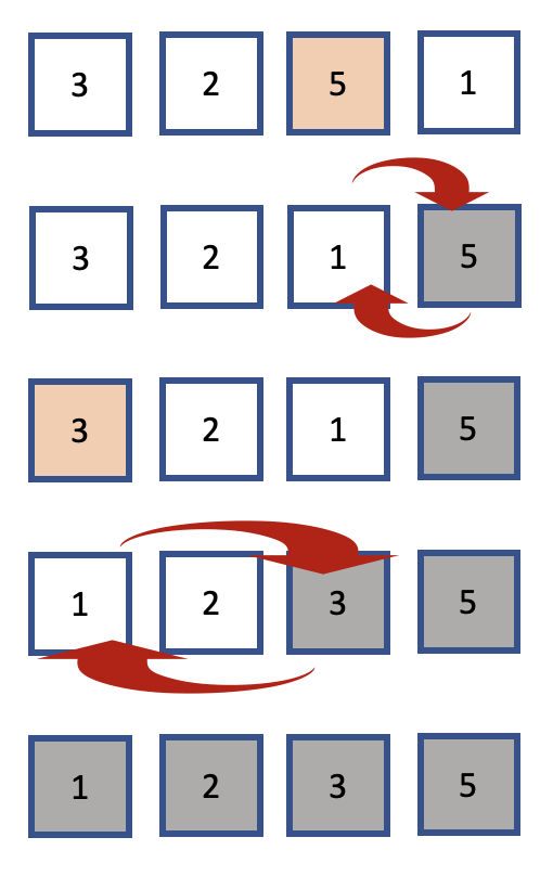 예를 들어 2 3 5 1 과 같은 배열을 오름차순으로 정렬한다고 하면