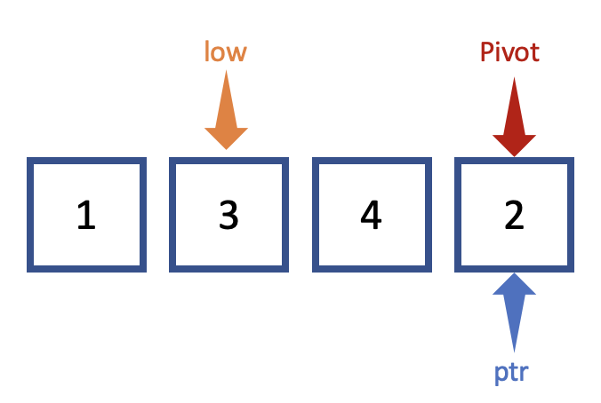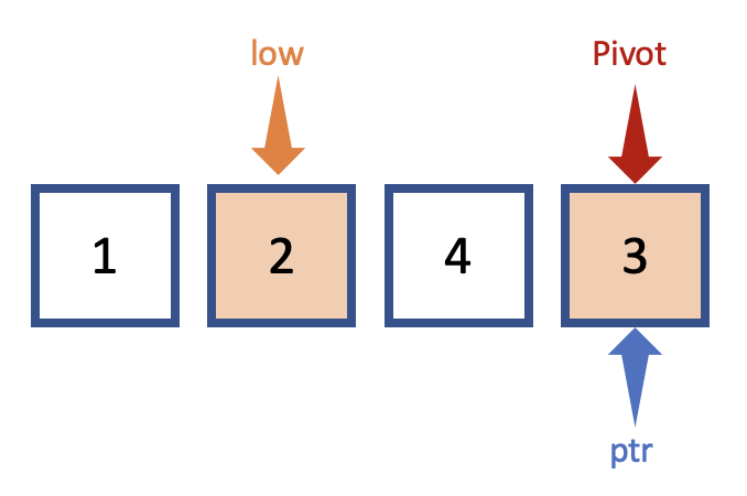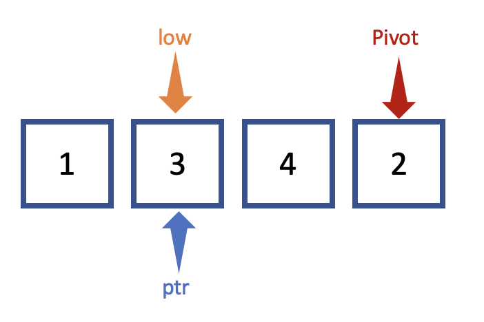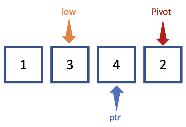 ptr에 있는 값이 더 크다면 low는 그대로 두고 ptr을 뒤로 옮긴다.