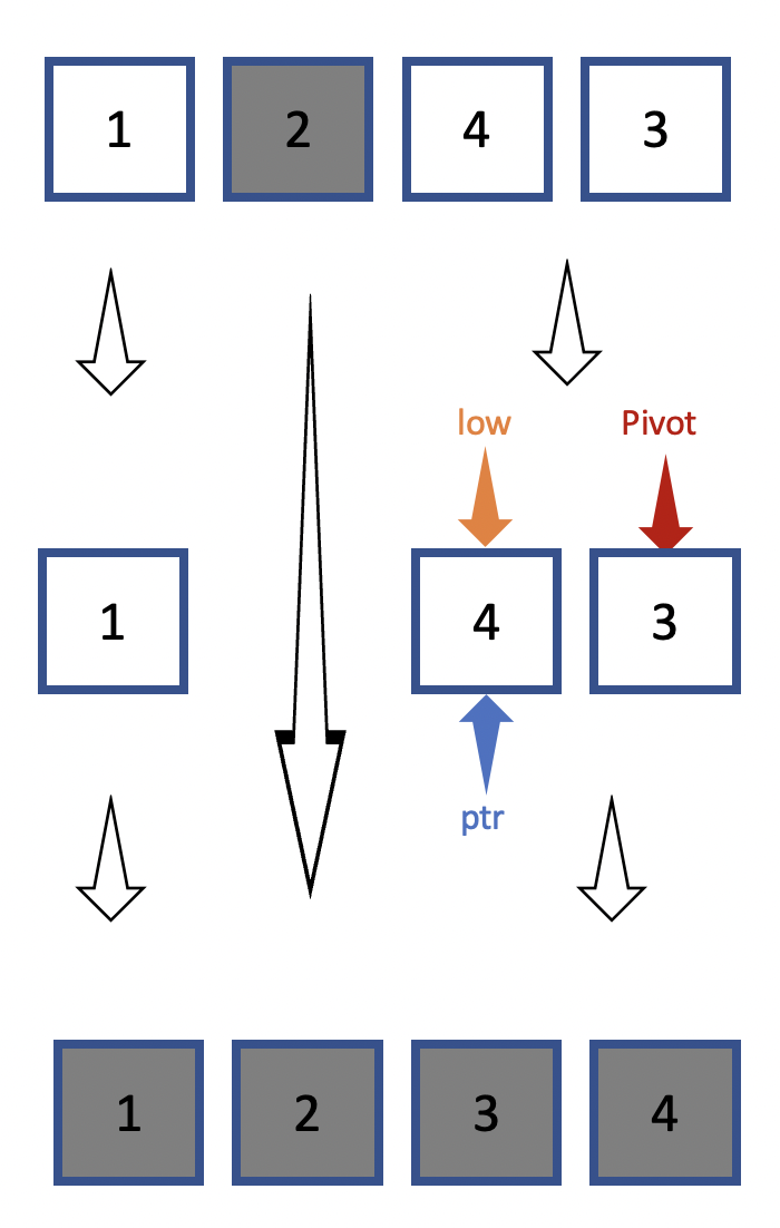 (++ 그리고 이때 만약 ptr값과 low값이 다르면 두 값을 Swap한다)