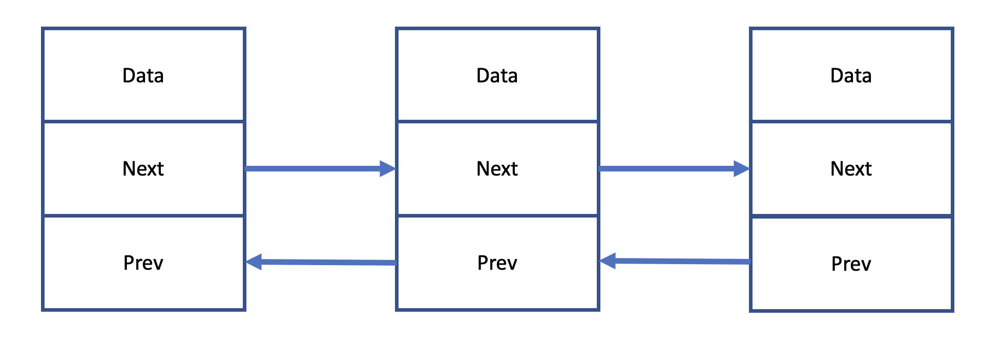 이중연결리스트는 이전 개체와 다음개체를 모두 가르키도록