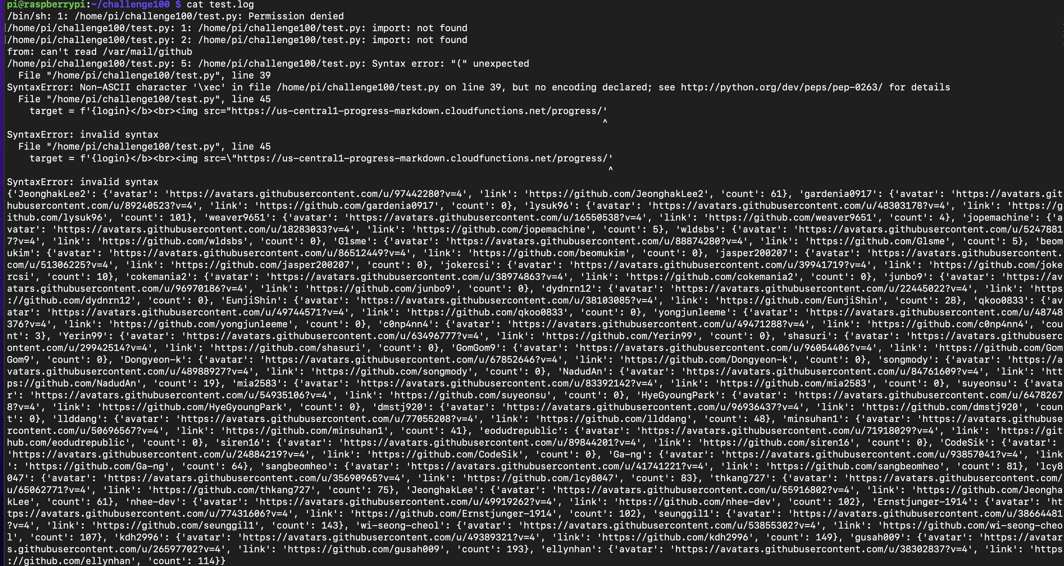 로깅 문제1 ) 로그를 보니 /bin/sh: 1: /home/pi/challenge100/test.py: Permission denied 에러 발생