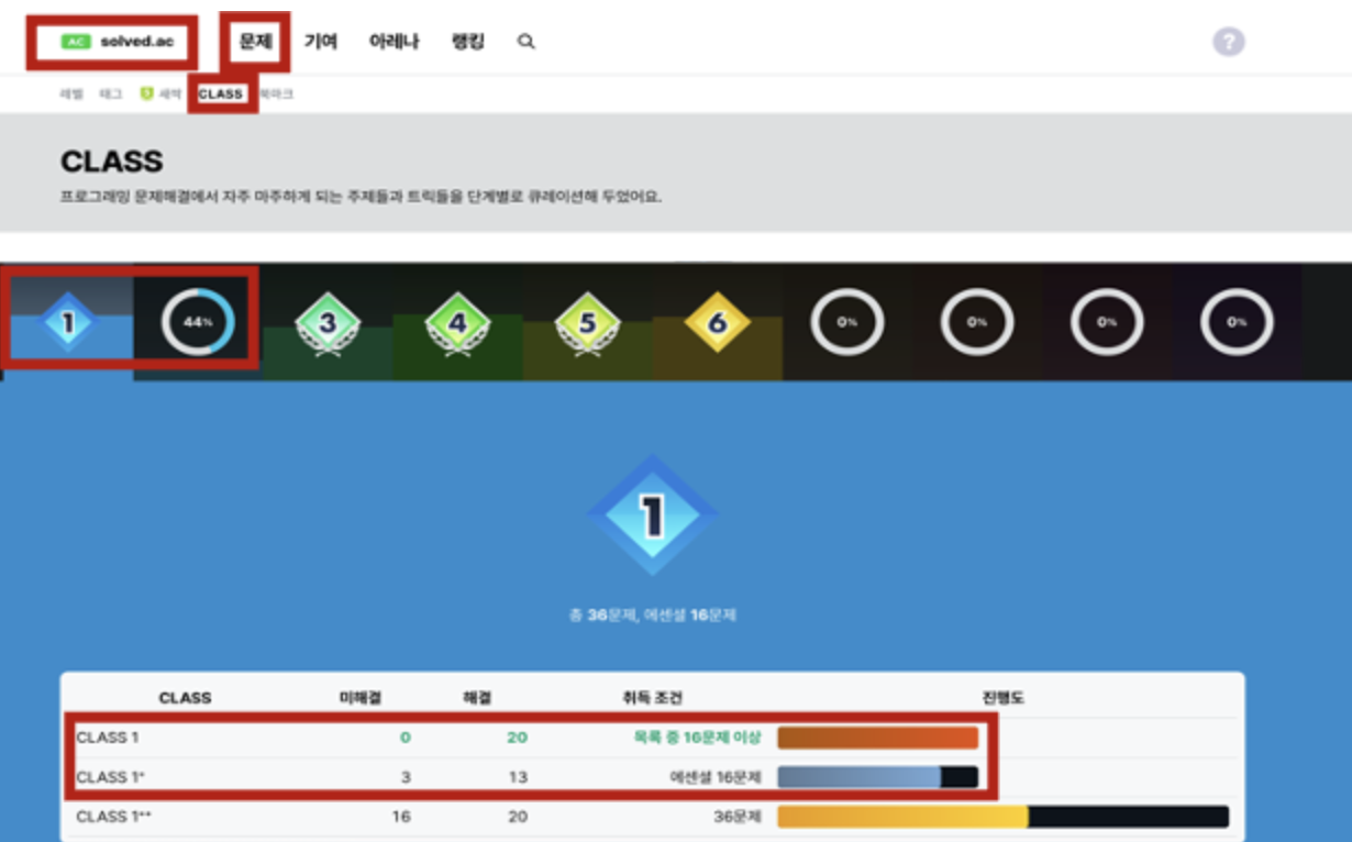 백준과 연동되어있는 solved.ac 라는 사이트에 들어가보면 [문제 > Class]라고