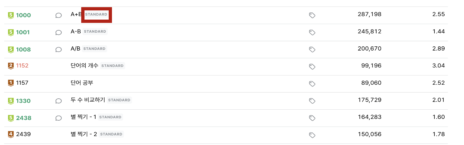 Class별로 STANDARD가 적혀있는 문제들을 풀어보는 것을 추천한다.