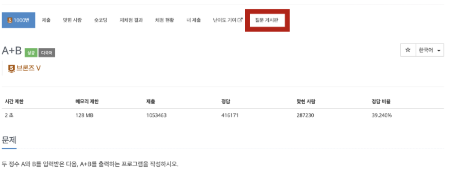 문제 페이지에서 질문 게시판에 다른 사람이 올린 질문들을 참고해보면 좋다.