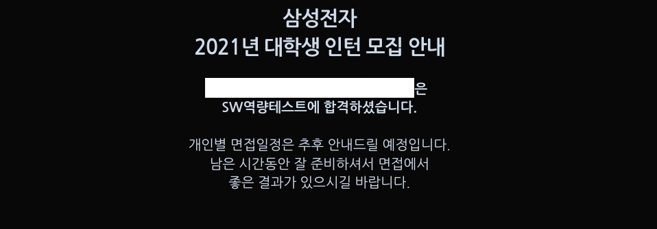 여러 인턴 지원하고 결과 받고 했었다. 근데 삼성은 제일 일찍 코테를 쳤는데 제일 늦게 결과가 나와서