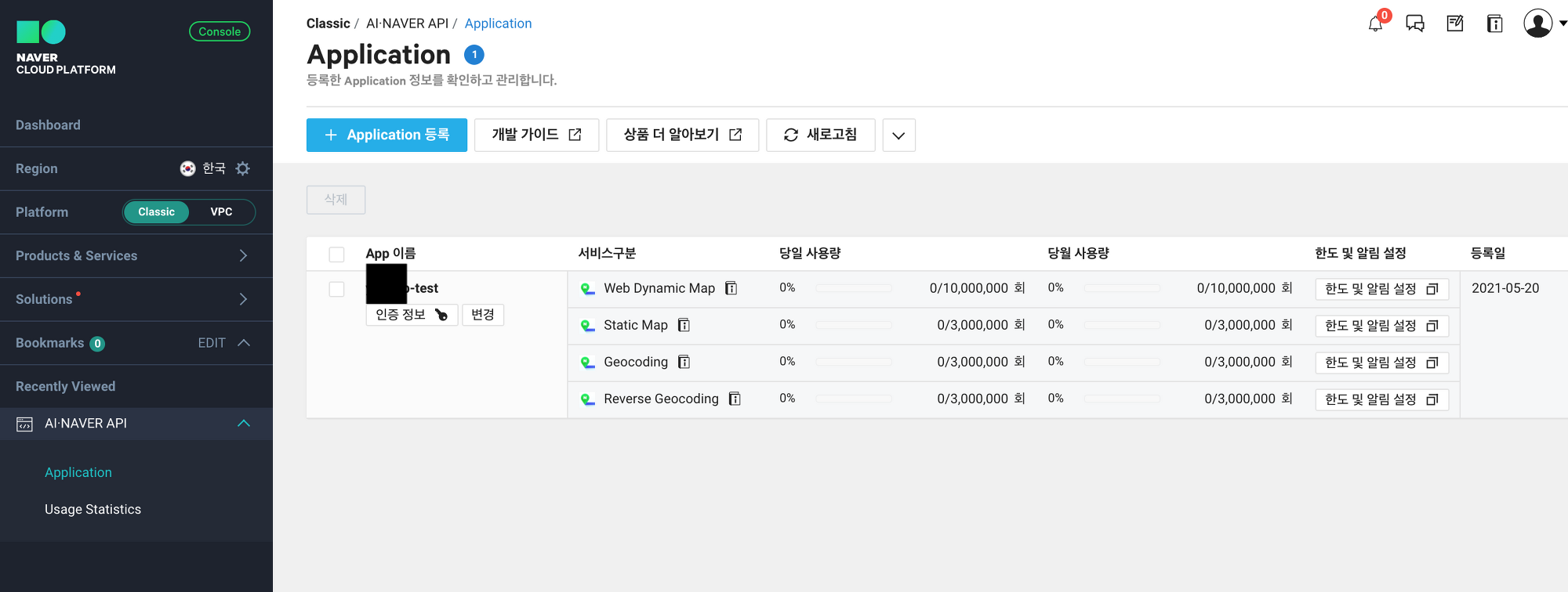 2. 네이버 클라우드 플랫폼 콘솔에서 Application 추가하기