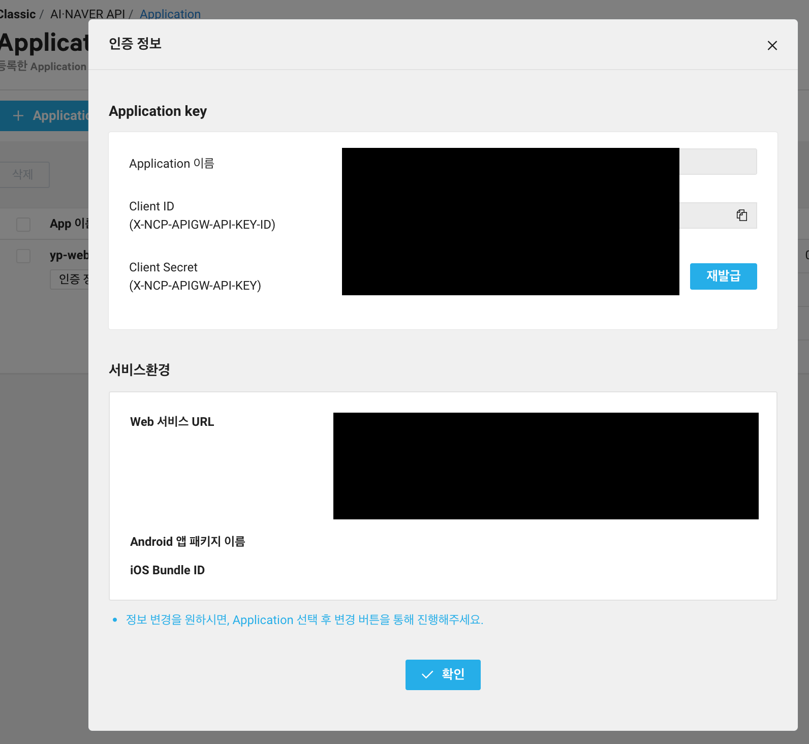 이 Client ID는 위 2번 과정의 네이버 클라우드 플랫폼 콘솔에서 인증 정보를 누르고 나타나는