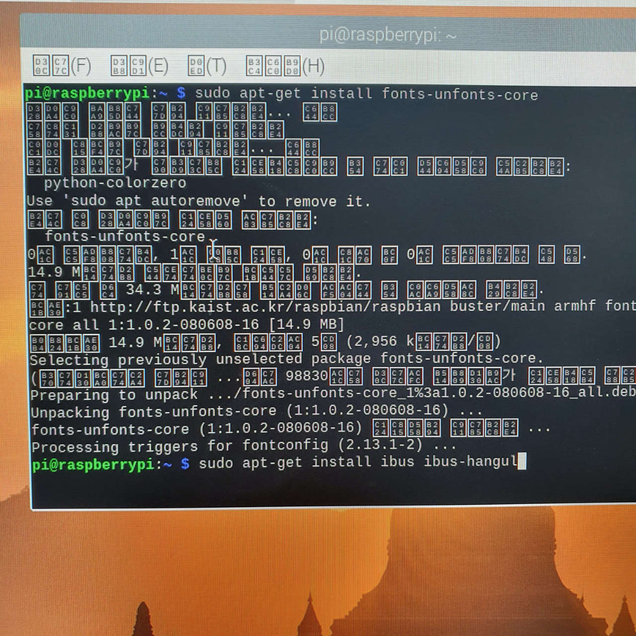 라즈베리파이 - 한글이 깨져 나오거나 한글이 입력이 안 될 때 해결책 (환경설정 & fonts-unfonts-core