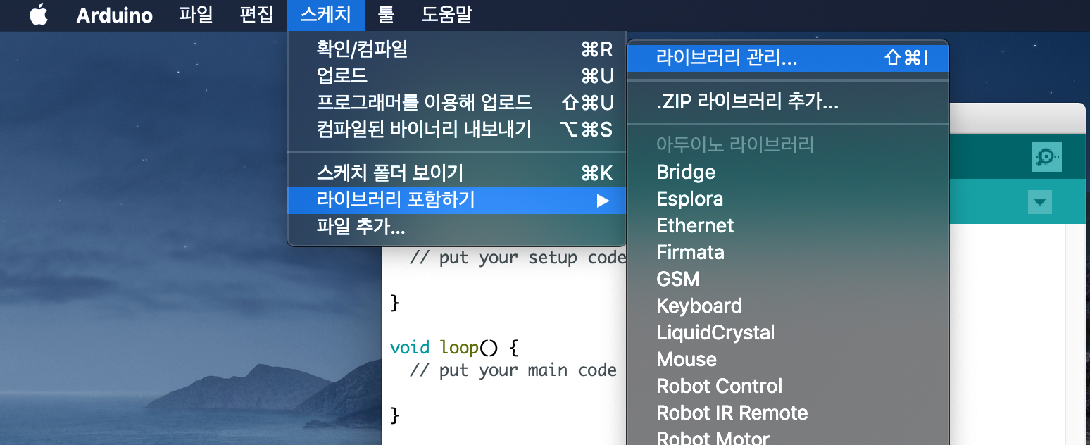 라이브러리를 추가해주기 위해 라이브러리 관리에 들어간다.
