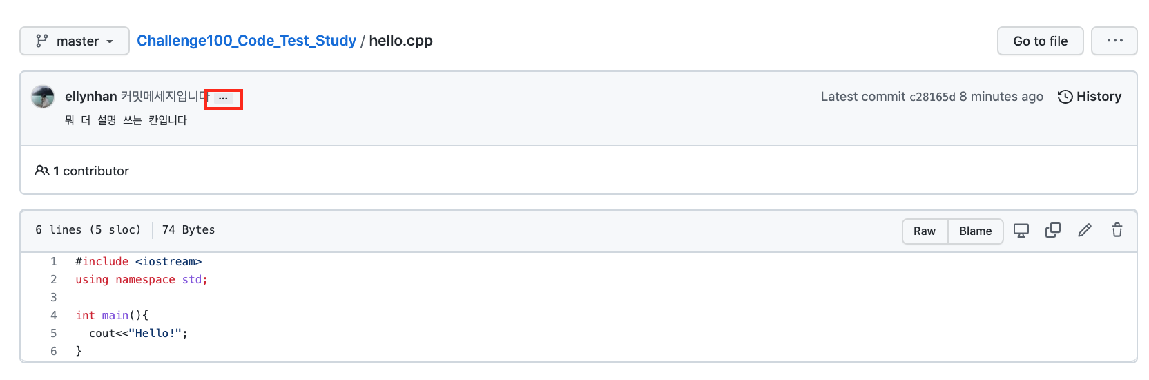 커밋메세지 옆의 ...을 누르면 아래 설명으로 적었던 것이 나타납니다.