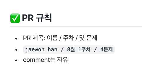Readme를 보면 PR규칙이 정해져 있습니다.