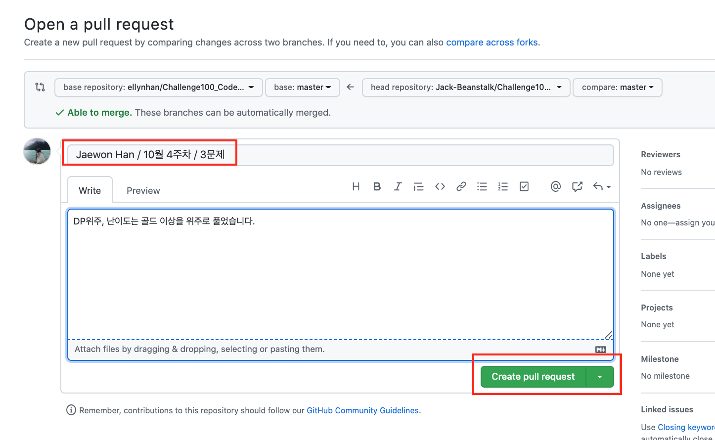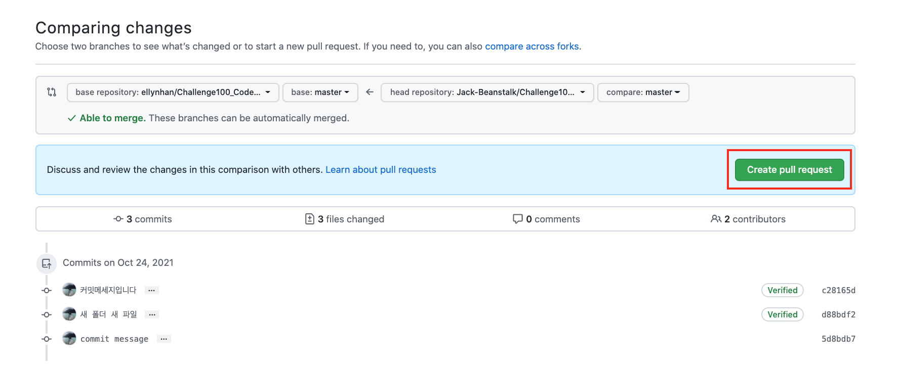 fork한 레퍼지토리에서 base 레퍼지토리로 PR을 보낼 때
