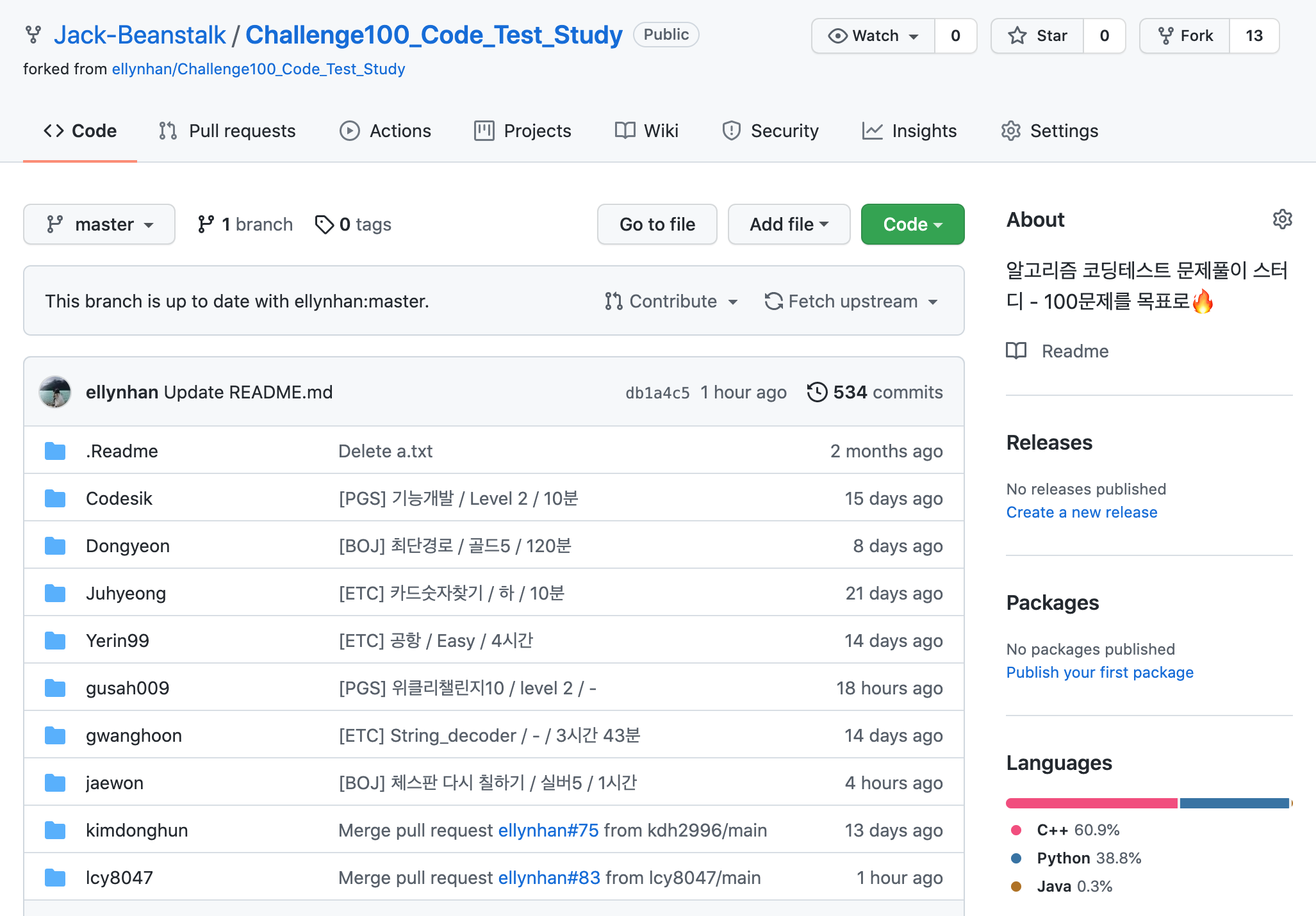 GitHub - ellynhan/Challenge100_Code_Test_Study: 알고리즘 코딩테스트 문제풀이 스터디 - 100문제를 목표로🔥