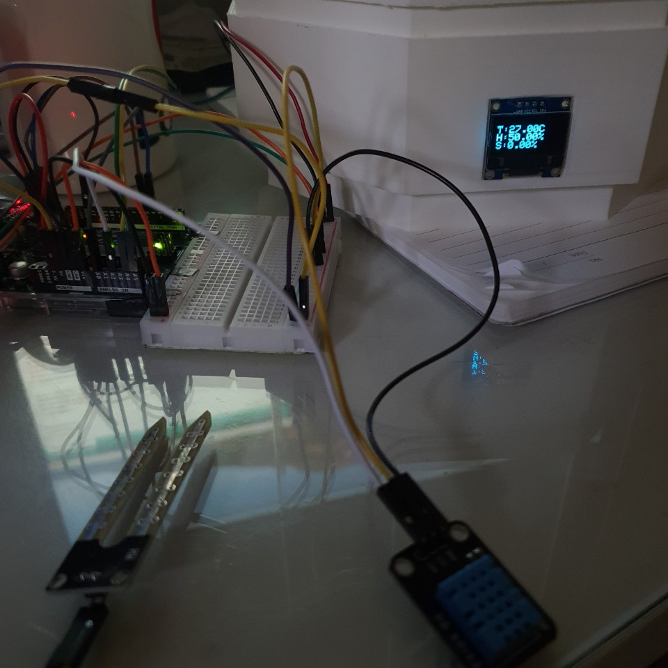 oled에 온습도 값과 토양습도값을 출력하고자 한다.