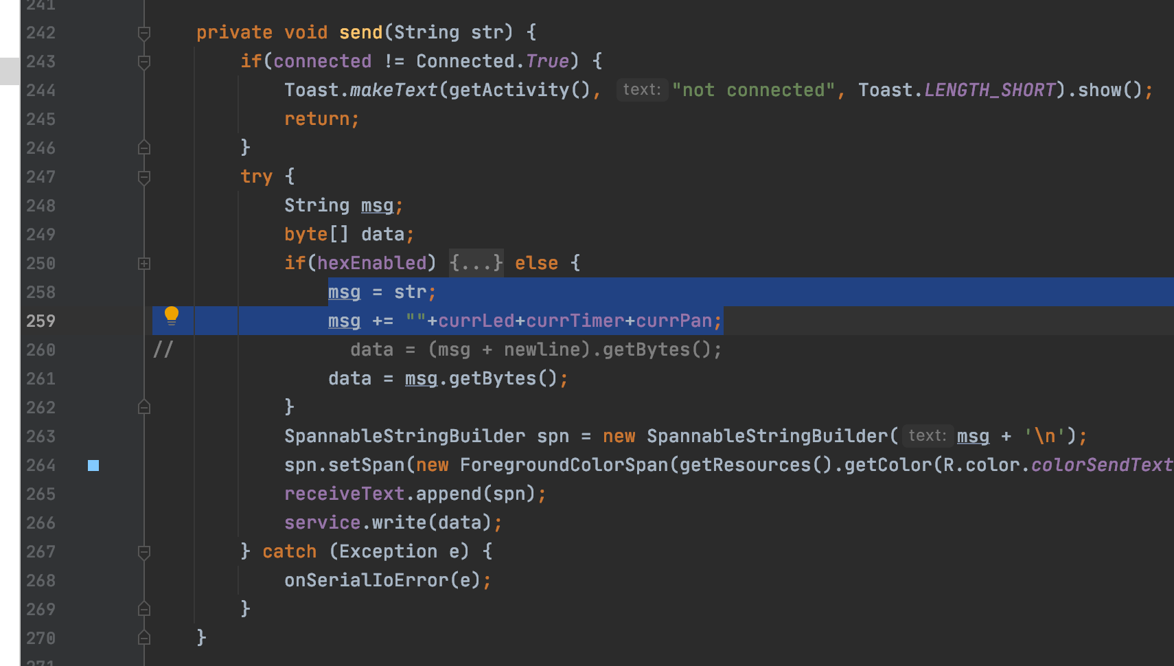 안드로이드에서 아두이노로 값을 전달하는 부분만