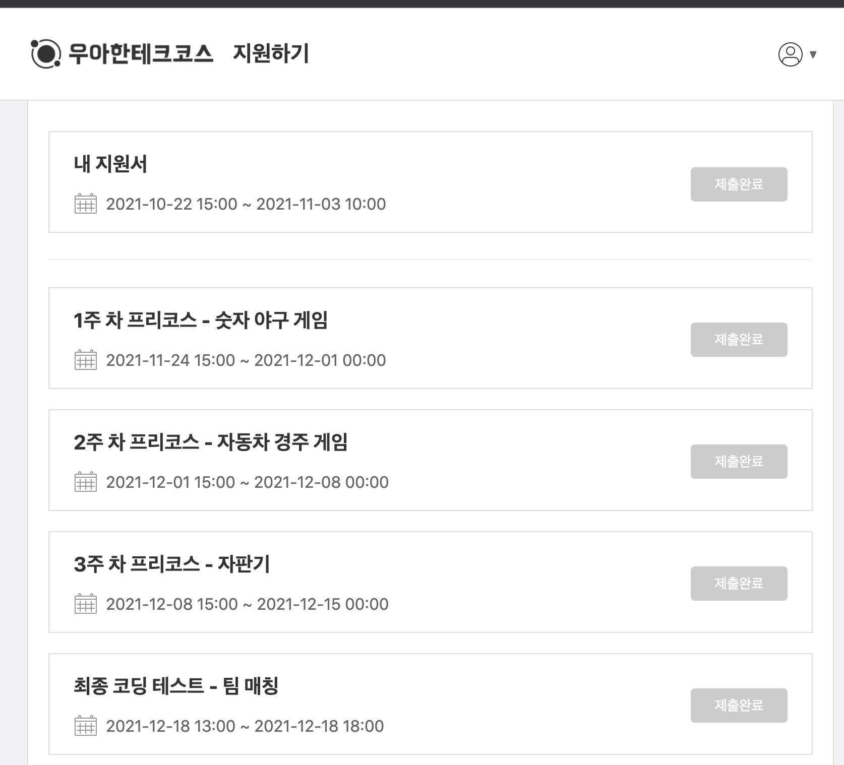 우아한테크코스 프리코스 3주를 모두 마무리한 지원자에게만
