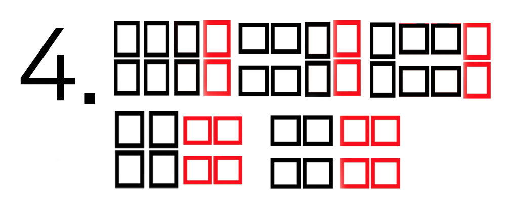 같은 방식으로 n=4일 때는 2x1 한개를 n=3인 경우의 오른쪽에 붙이거나