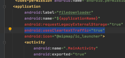 혹시나 http로 시작하기 때문에 다운로드가 안된다는 오류가 나타난다면, AndroidManifest.xml파일에 <application 안에 다음과 같이