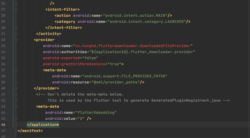 java.lang.illegalargumentexception: couldn't find meta-data for provider with authority com.example.filedownloader.flutter_downloader.provider 와 같이 각종 오류들이 터져나온다.