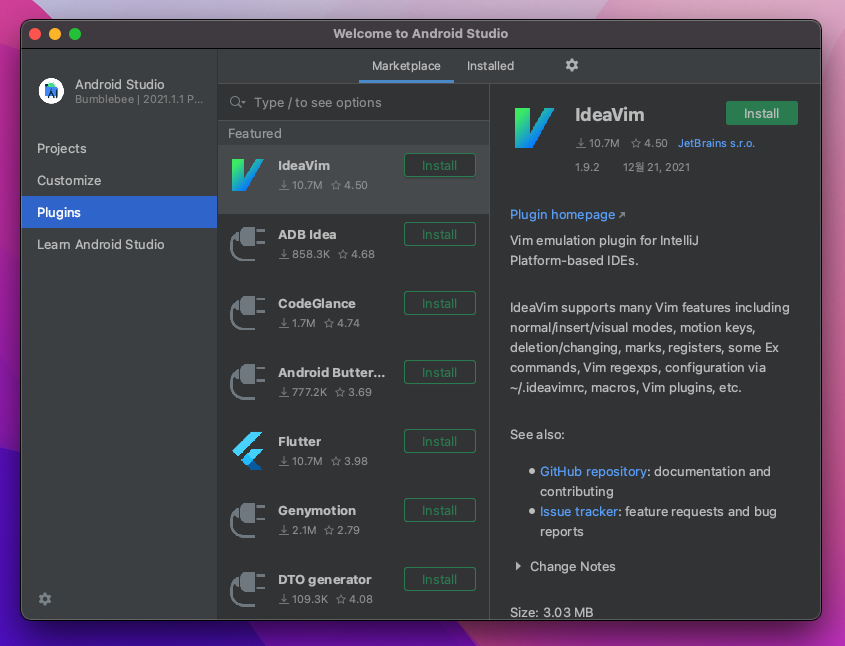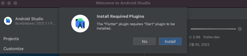 Flutter를 Install한다. 그러면 설치 중간에 Dart 플러그인이 필요하다고한다. Install한다.